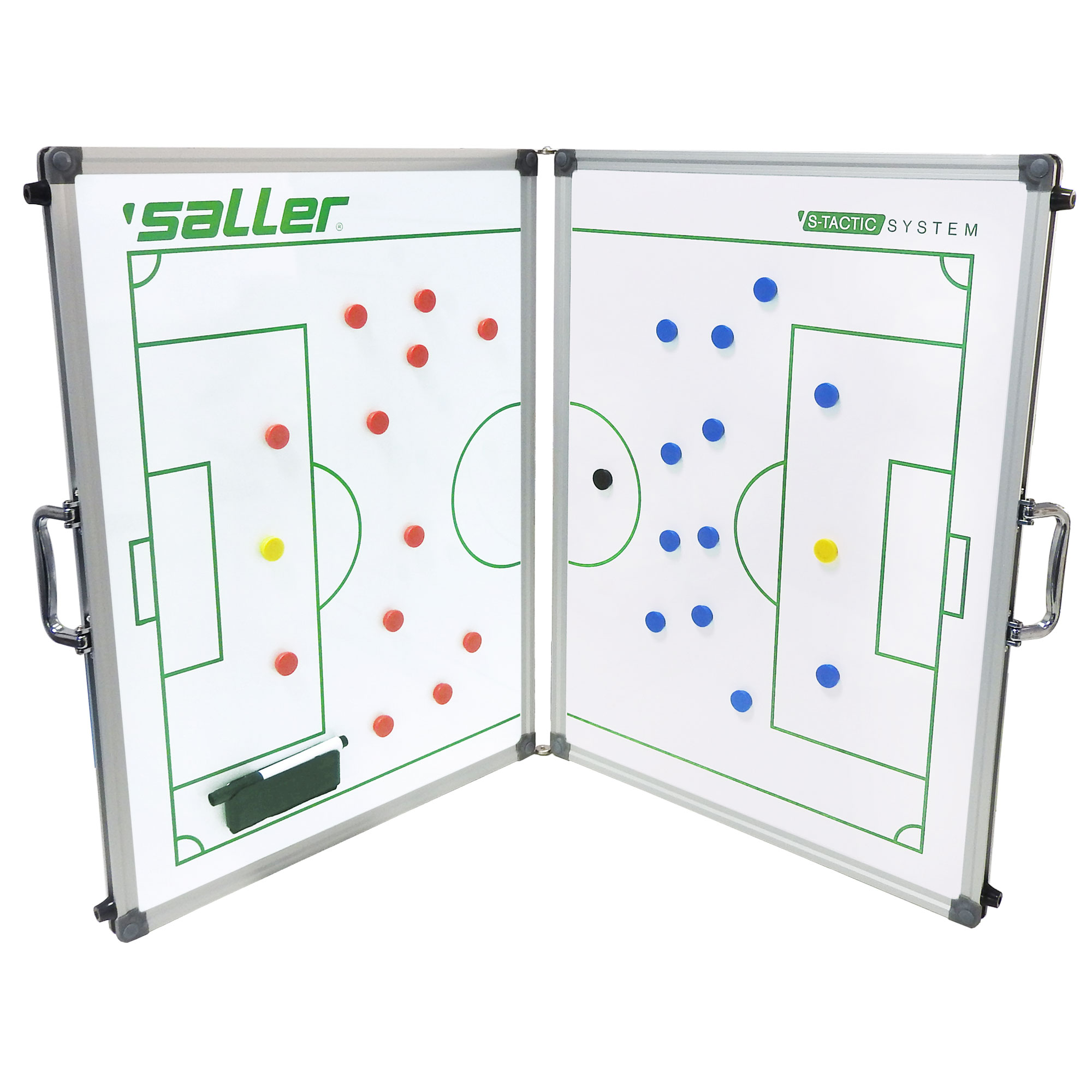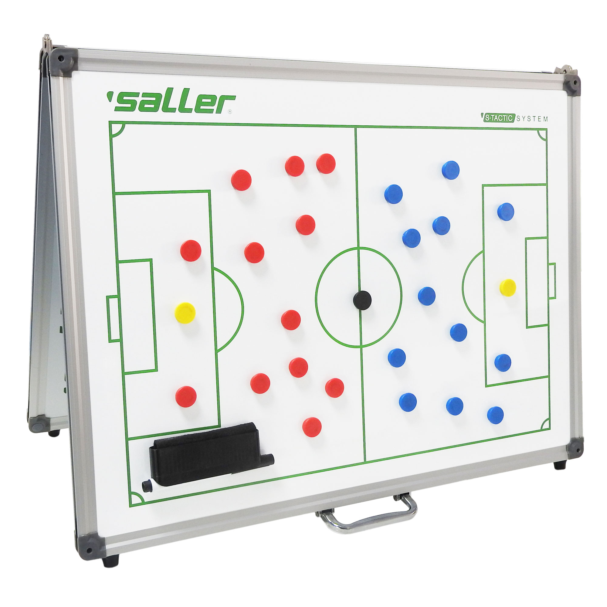 A praktikus, falra szerelhető Saller mágneses taktikai táblával semmi sem áll a tökéletes mérkőzésfelkészítés útjába. A mágneses speciális bevonatnak köszönhetően a játékszituációk mágnesekkel kiválóan szemléltethetők, de a taktikák filctollal is könnyedén felrajzolhatók.